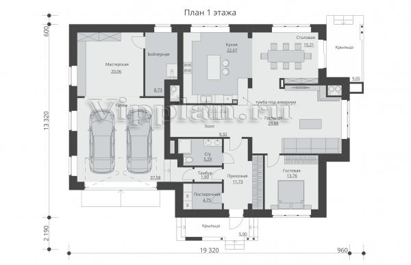 | Размеры дома: | 13.32м×19.32м |