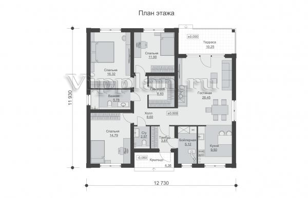 | Размеры дома: | 11.93м×12.73м |